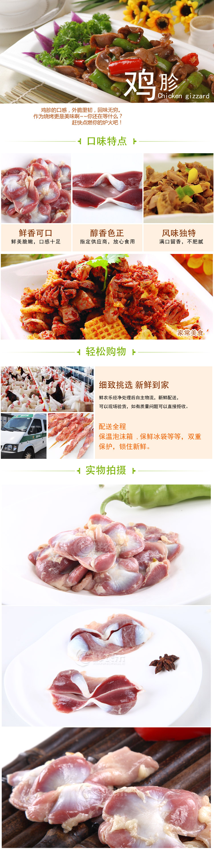 鲜农乐 新鲜生鸡胗 约500g 鸡内脏
